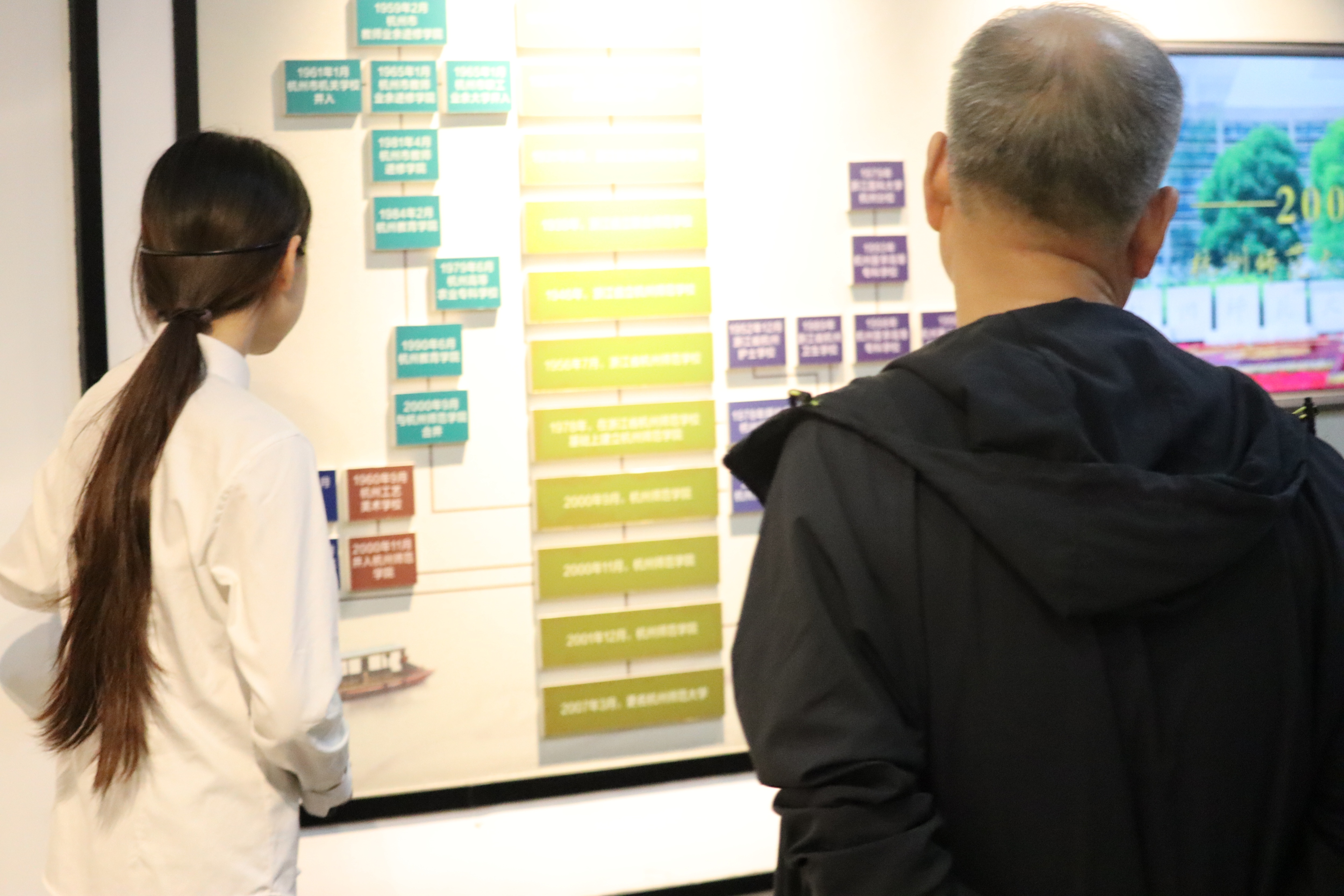随后,校友们共同走进校史馆参观,跟随志愿者的细致讲解,重温学校从创立之处到蓬勃发展的峥嵘岁月。师大一路走来的坚实足迹和未来发展的宏伟蓝图,给校友们留下了深刻的印象。午餐时分,校友们在食堂享“校友餐”,叙同窗情,仿佛回到求学时的青葱岁月。校友们还参观了 黑料网 和仓前校园,对比记忆中的校园旧貌和眼前郁郁葱葱的校园新景,校友们感慨学校的蓬勃发展。