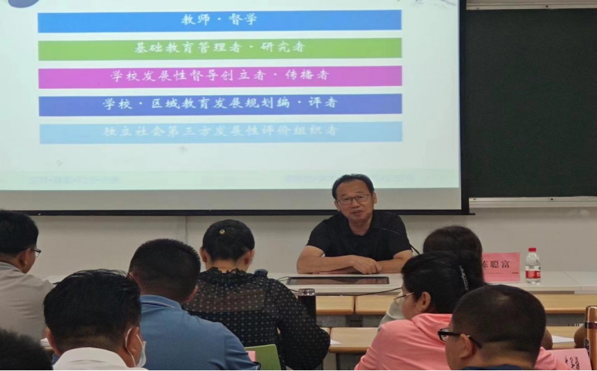 学校发展性督导是对学生、教师和学校三类主体的督导,是成人与成事的辩证统一,同时体现了分类管理、精准赋能与差异监管的时代导向。切实推进学校发展性督导工作,是为了共建更优的评价,更好的督导,更美的教育。伴着杭师大早晨八点的微风,6月13日上午,浙江省督学、温岭市人民政府教育督导室原主任陈聪富老师为阿克苏地区第一期骨干督学们带来了一场关于发展性督导的饕餮盛宴。 陈聪富老师关于教育高质量发展与学校发展性督导的讲授既立意高远,又深入浅出引人入胜,让学员们进一步拓宽思路,了解教育改革发展动态,把握教育督导法规政策要义,明确督学岗位职责,拓展教育督导视野,增强在实际工作中的信心,提升督导评估水平。