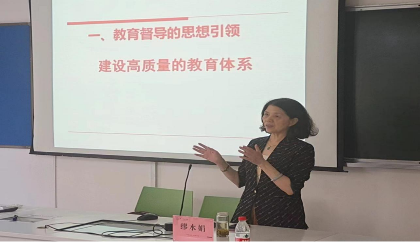 14日上午,国家特级督导员、浙江省教育厅教研室原主任,浙江省特级教师缪水娟,用前沿的理论、生动的案例、丰富的内容,从教育督导的引导、教育督导的多元化、教育督导的专业发展三个方面讲授了教育综合改革背景下的督导新视角,对“十四五”规划和2035年远景目标纲要提出建设高质量的教育体系、《中国教育现代化2035》中的八个主要发展目标、发展高水平高质量的基础教育、推进义务教育优质均衡发展、推进基本公共教育均等化、《深化新时代教育评价改革总体方案》中的改革重点等内容进行了详细的讲解,对如何以校园文化建构学校良好的教育生态、如何强化制度建设育人氛围,如何坚持五育并举五育融合做了经验分享,给学员们呈现了一场精彩的视听盛宴,为学员们今后教育督导工作指明了方向,坚定了成为教育督导内行人的信念。