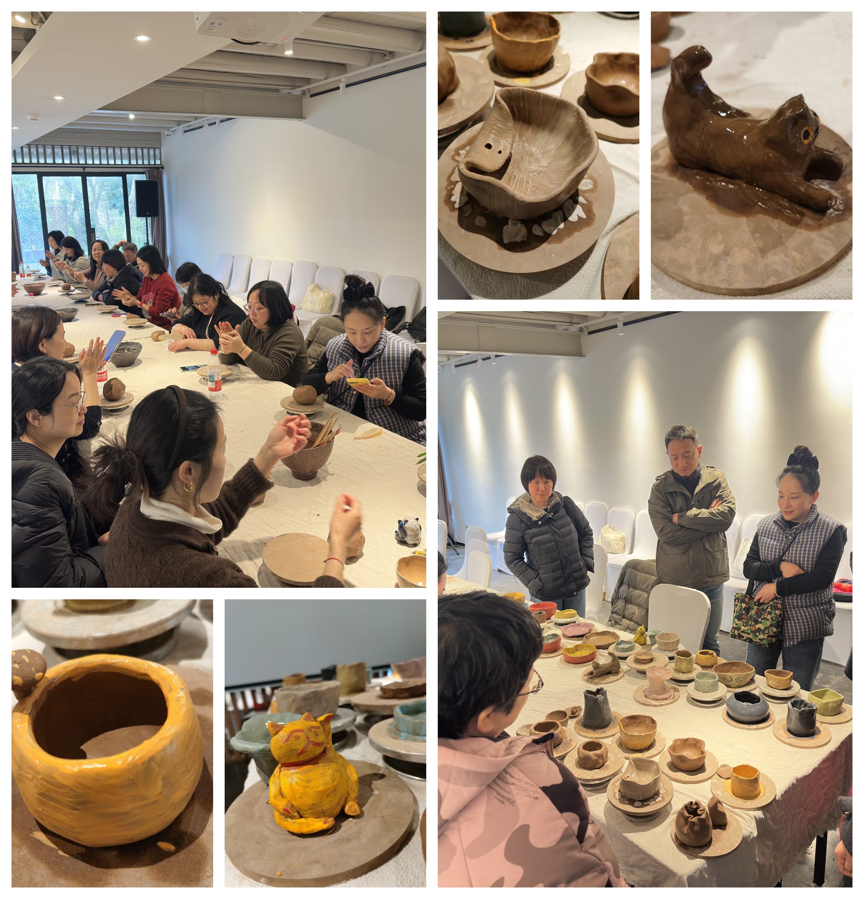 步入实操环节,女教工们满怀期待地投入到陶艺的创作世界。起初,陶泥似乎略显“倔强”,难以驯服,但在老师的悉心指导与鼓励之下,大家渐入佳境。指尖轻触陶泥,仿佛开启了一场心灵与自然的对话,每一次旋转、每一次按压,无不蕴含着创作者对生活的热爱与对美的追求。时光悄然流逝,一件件形态万千、风格迥异的陶艺佳作应运而生,有的清新脱俗,宛如春日初绽的花朵;有的古朴典雅,散发着历史的沉香,每一件作品都承载着创作者的情感与温度,跃动着生命的韵律。